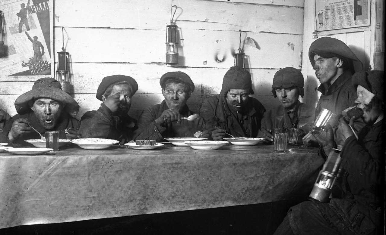 Repas dans une cantine d’une mine de la région de Čeljabinsk. Photo de Leonid Surin, 1929, Archives d’État de la région de Sverdlovsk, f. F-1, inv. 32, cliché 3651.